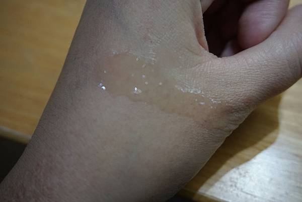 看的出來是有流動性的,不會悶,在皮膚上吸收也快,